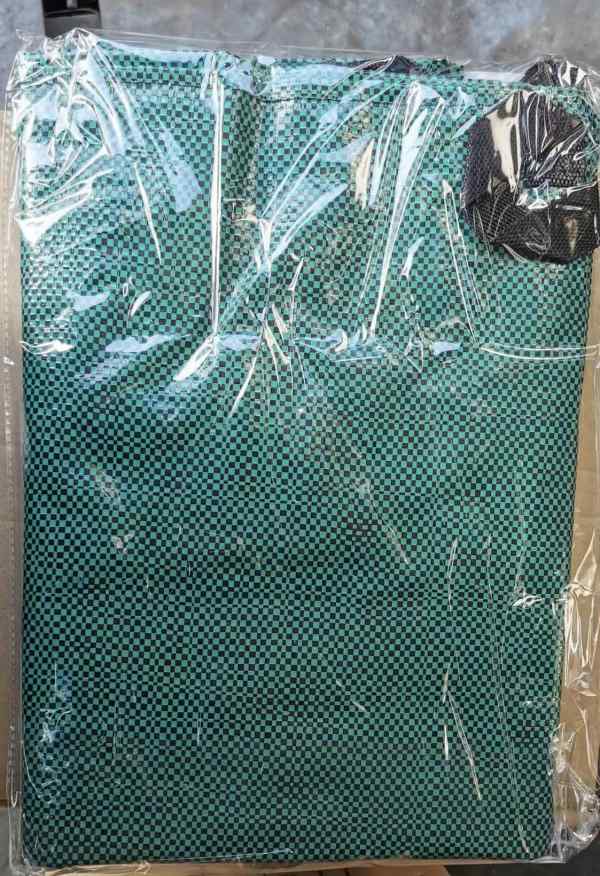 材質(zhì):PP/PE雙面覆膜綠黑格篷布+4個(gè)丙綸織帶提手